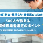 【前編】料金・見積もり・業者選びの決め手!500人が教える水道修理業者選定のポイント(水道修理業者、株式会社N-Vision調べ)