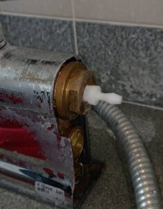 今回の作業内容は切替弁以下の写真白い部分を新しい物と交換
