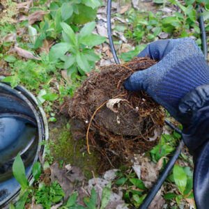 ひとつずつ丁寧に根を取り除いた後、高圧洗浄を行い排水管を清掃しました。