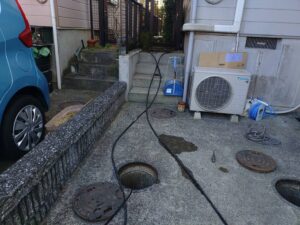 35年間蓋も開けたことがなく、内部の状況も把握していなかったとのことで排水管全ての高圧洗浄をさせていただきました。