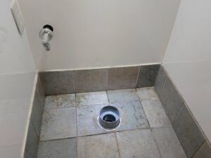 立ち上げアダプターのタイルメジ部分に穴が開いてたので、コーキングを塗布をしてからトイレを組み込みました。