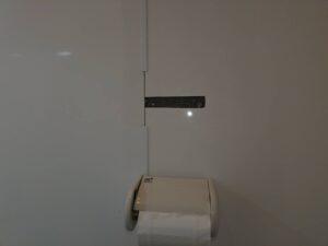 既存のリモコン裏はパネルがなく穴が開いていたのと目地にコーキングを入れて隠すように新しいリモコンを取り付けしました。