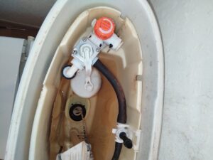 2階のトイレは手洗付ですがお水が出ないとのお話しでお調べしたところボールタップ(自動的に開閉し給水止水)装置が経年劣化で壊れており給水出来なかったことが判明しました。
